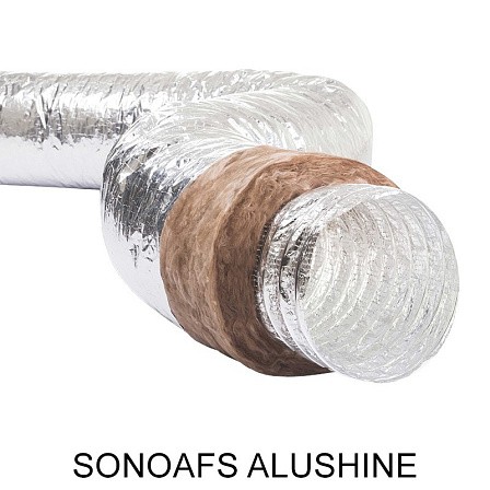 SONOAFS-ALU SHINE ECOSOFT представляют собой гибкие звукопоглощающие воздуховоды теплоизолированные алюминиевые, выполненные из многослойного алюминия и металлизированного полиэстера (перфорированного), усиленный спиральным каркасом из стальной проволоки с высокой жесткостью. Внешний чехол выполнен из алюминиевой паронепроницаемой фольги.